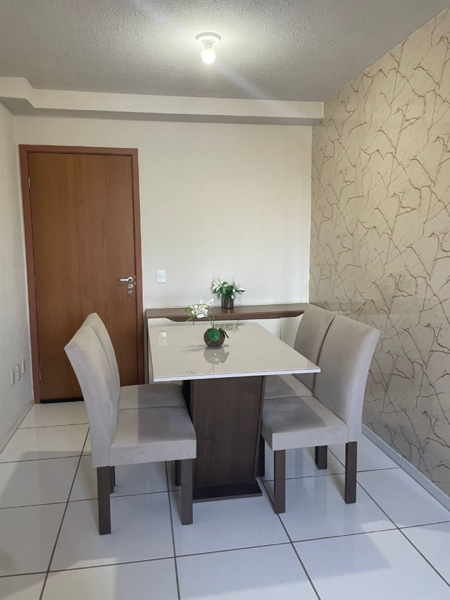 ✅ Parede adesivada em mármore, agregando requinte ao espaço